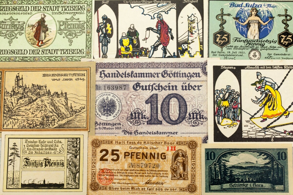 Este lote incluira 25 billetes notgeld individuales de Alemania despues de la Primera Guerra Mundial. Todos estaran en condiciones Extrafinas a Sin circular (XF-UNC). Valores nominales entre 5 pfennig y 5 marcos.