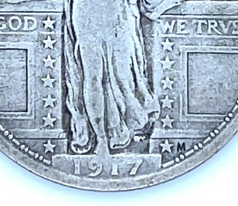 1917 Tipo 1 25C IN Piedi Liberta Quarto IN Sottile Condizioni, 4 Cifre Periodo