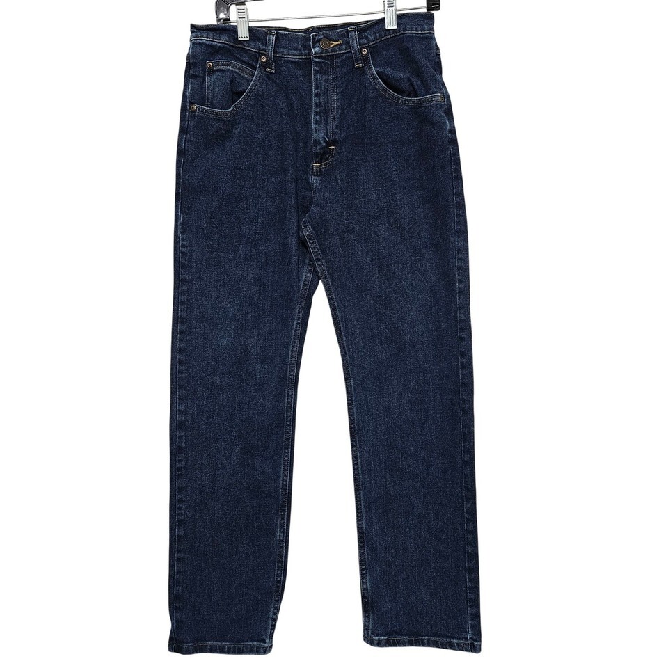 Wrangler Relaxed Straight Leg Jeans Dark Wash Denim Men's 31x30 Workwear Rugged