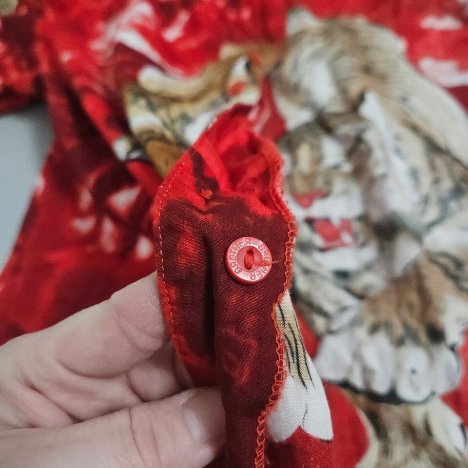 Vintage Y2K Grunge Red Tiger Dragon Cyber Japanese Button Up Streetwear Tattoo L
