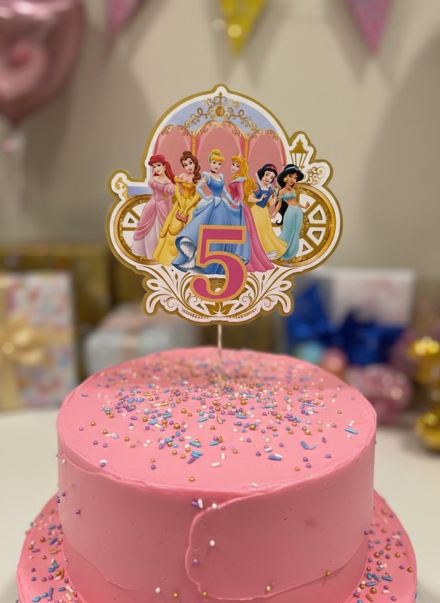 Make your little princesss birthday extra magical with this personalized Disney Princess cake topper Perfect for first birthdays or any age celebration, this royal themed topper will be the highlight of your cake and party setup.