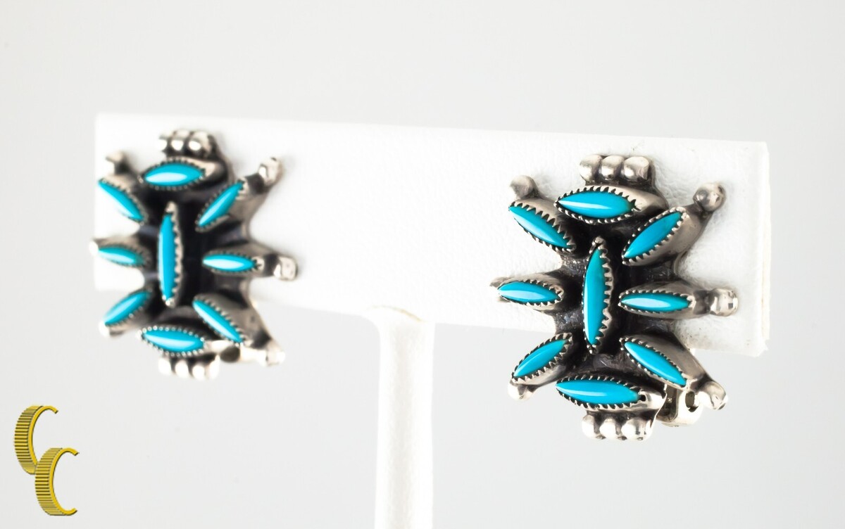 Sterling Silver Turquoise Sunburst Clip-On Earrings Beautiful!