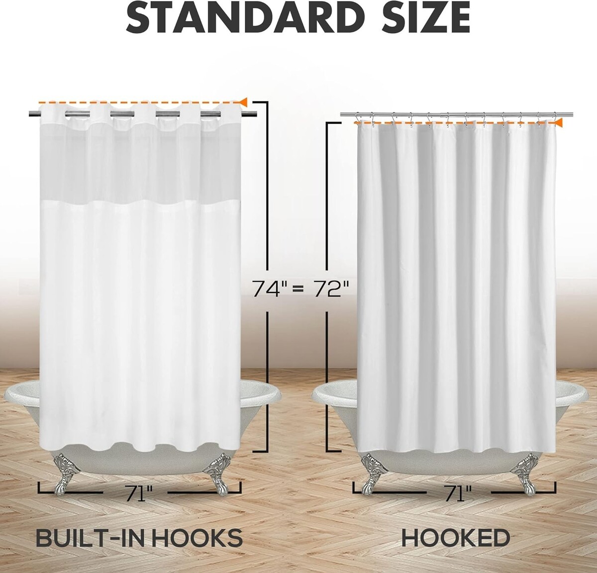 Stylish Slub Textured Shower Curtain with Light-Filtering Sheer Top, 71x74