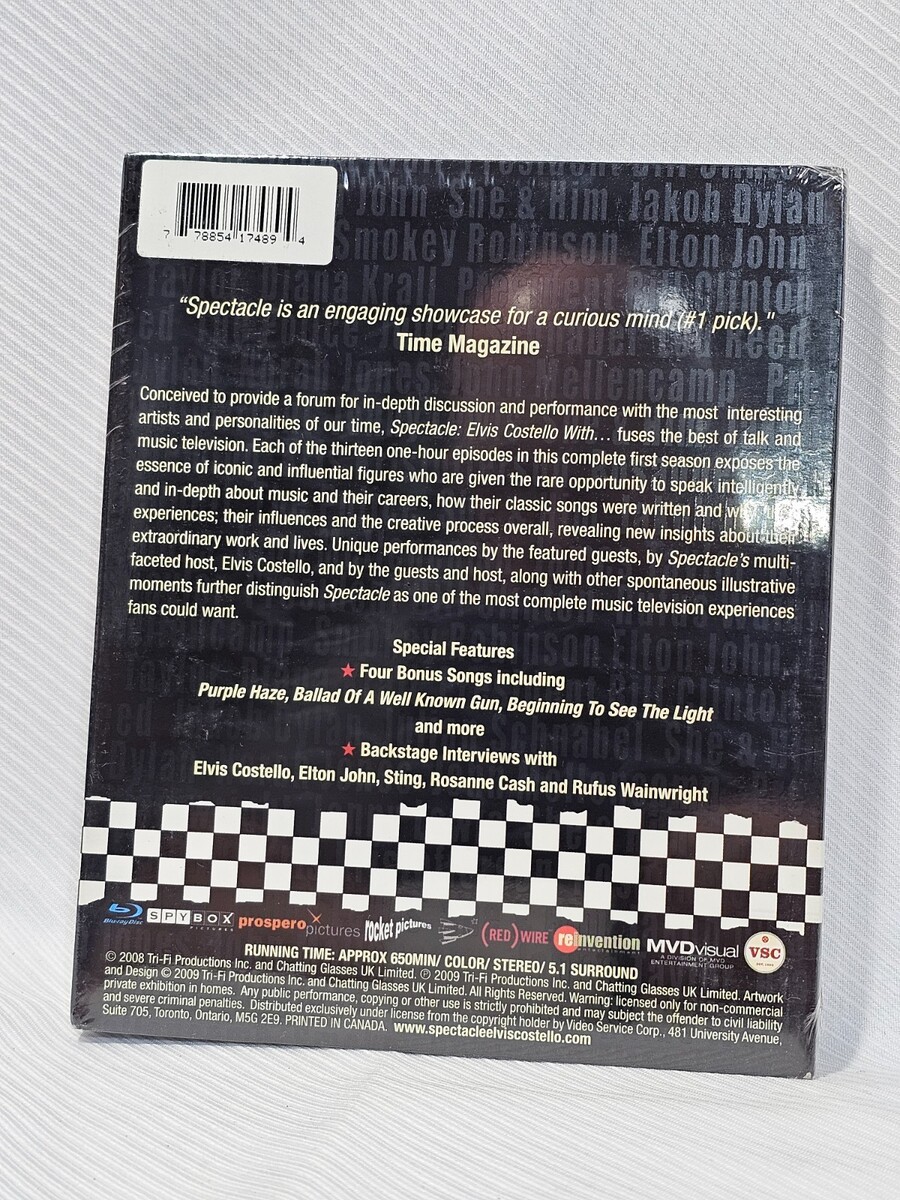 Description of item: Hosted by legendary musician Elvis Costello, Spectacle: Elvis Costello With? is a unique music and talk series that brings together some of the most influential artists of our time. In this complete first season, Costello sits down with an impressive lineup of musicians and cultural icons for in-depth conversations about songwriting, inspiration, and the creative process.