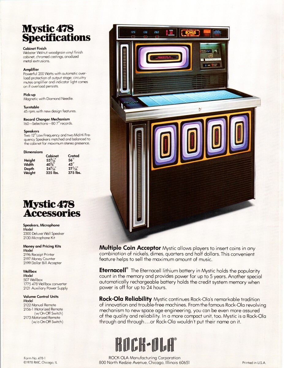 Mystic 478 Jukebox FLYER 1978 Original and similar items