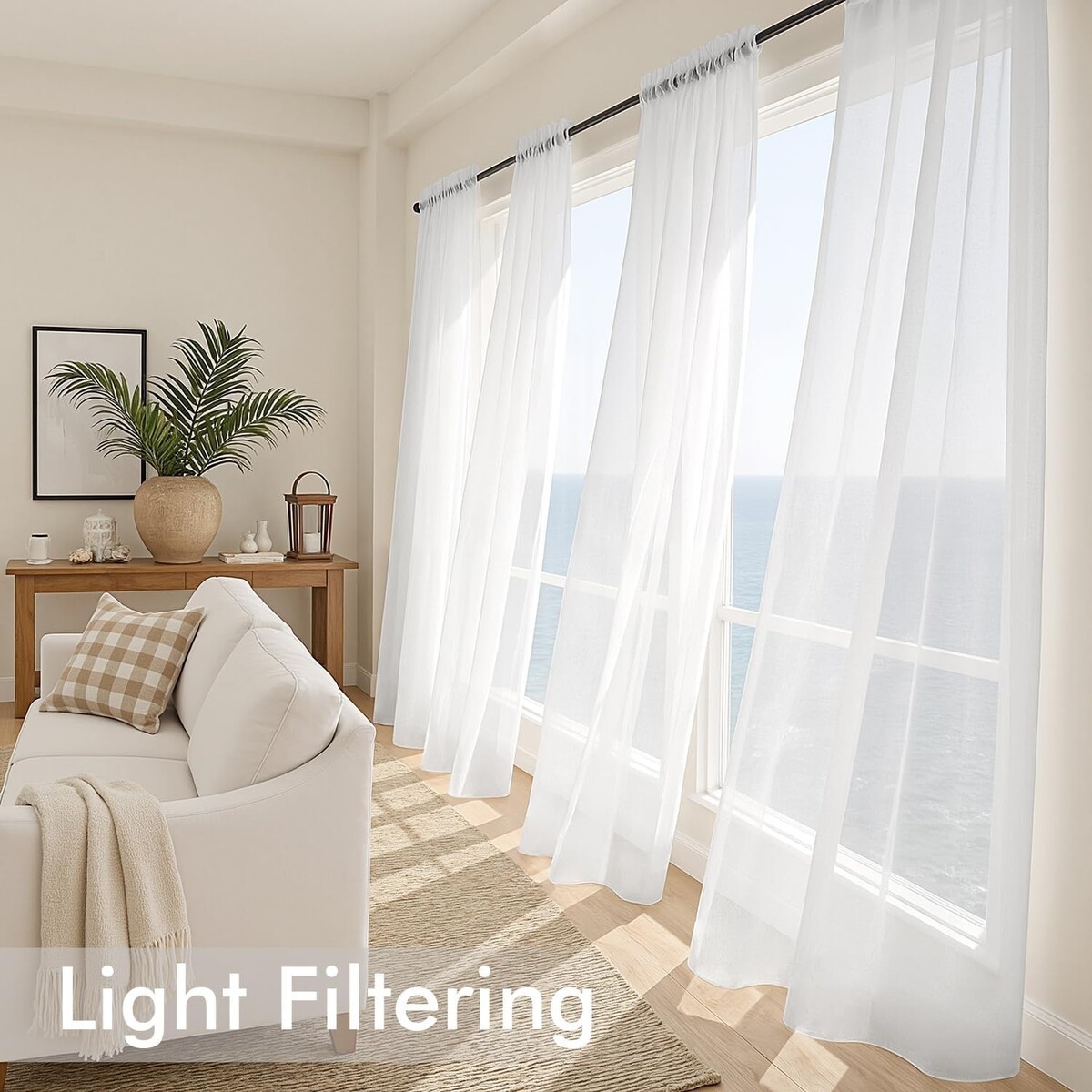 Lightweight White Voile Drapes - 4 Panel Set for Living Room & Bedroom, 42 x 84