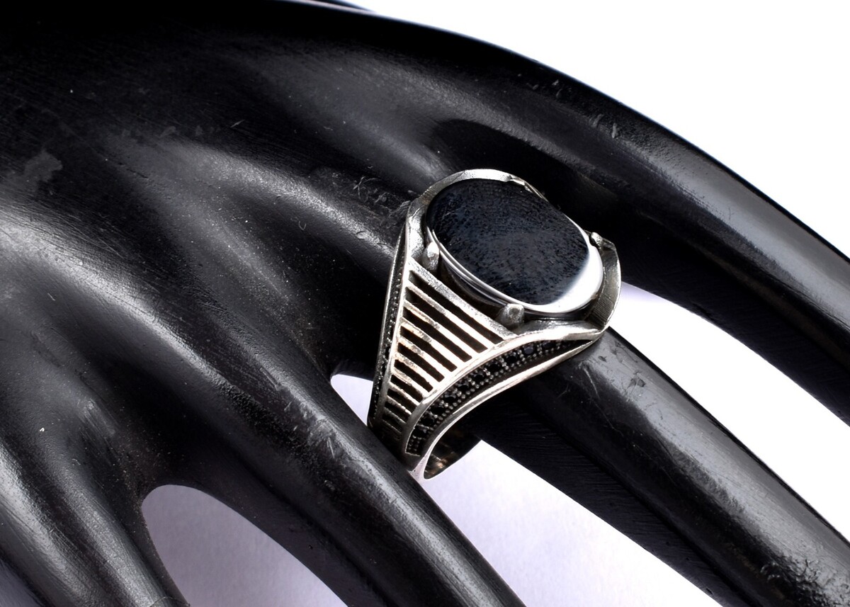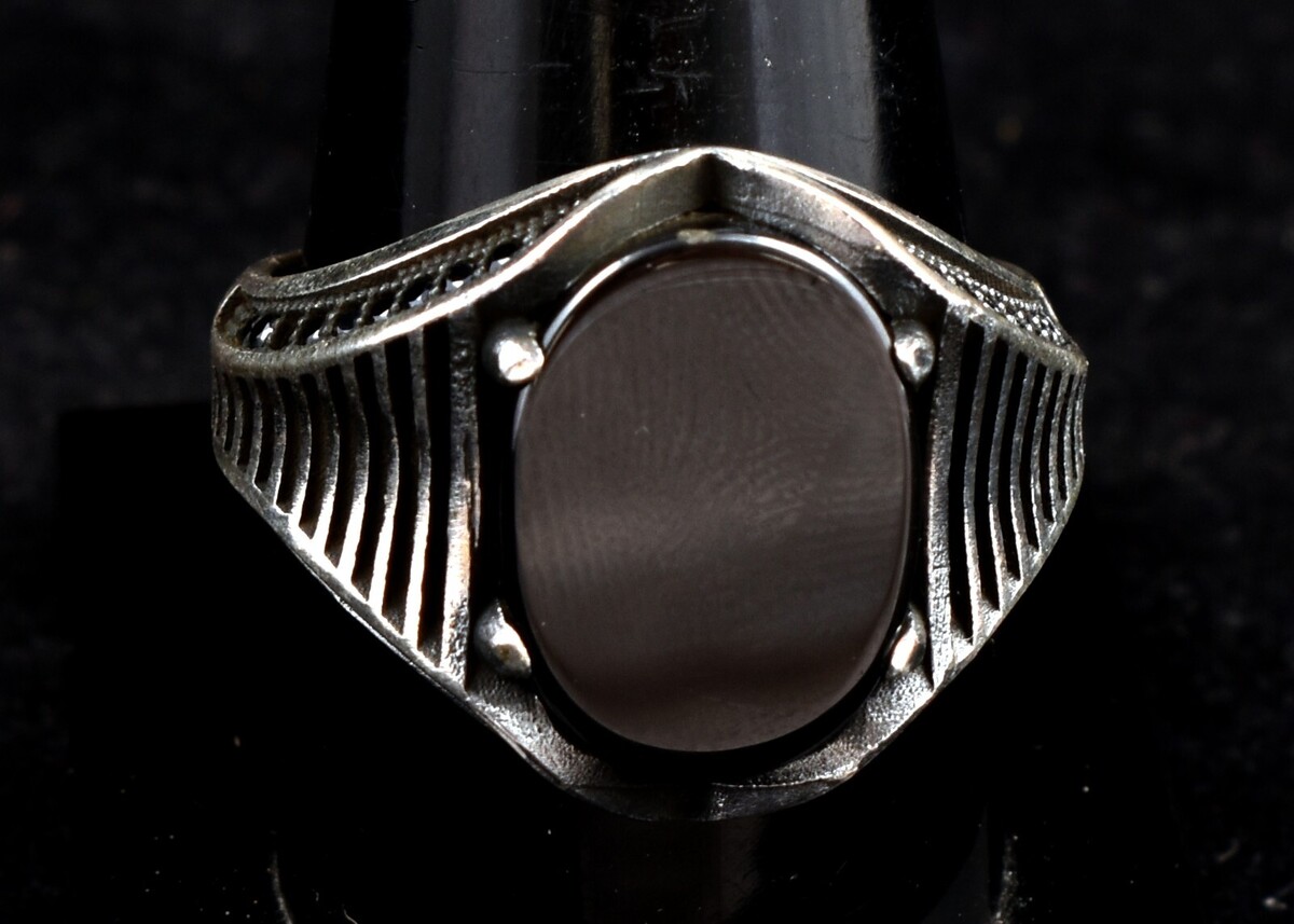 Bague unisexe en argent sterling 925 fait main en pierre précieuse onyx noir ...