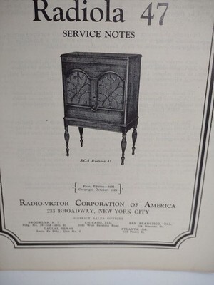 RCA Radiola 47 Vintage Original 1929 Service Notes Manual Radio Victor 28 Pages