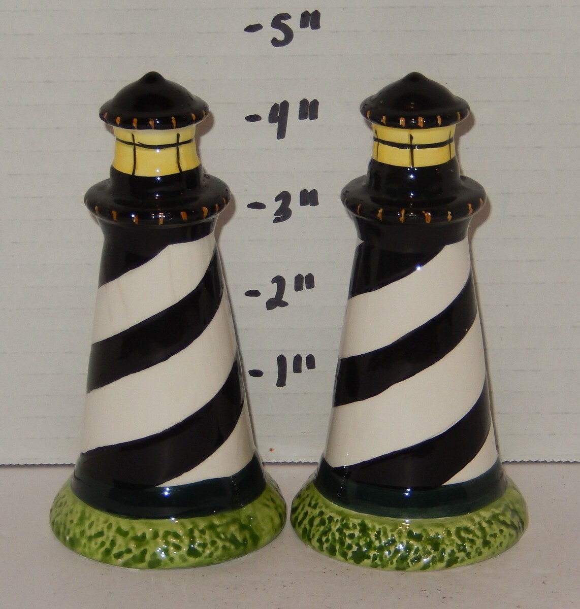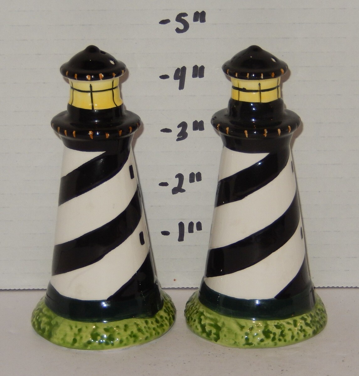 Lighthouse Salt and Pepper Shakers Black White Green Nautical
