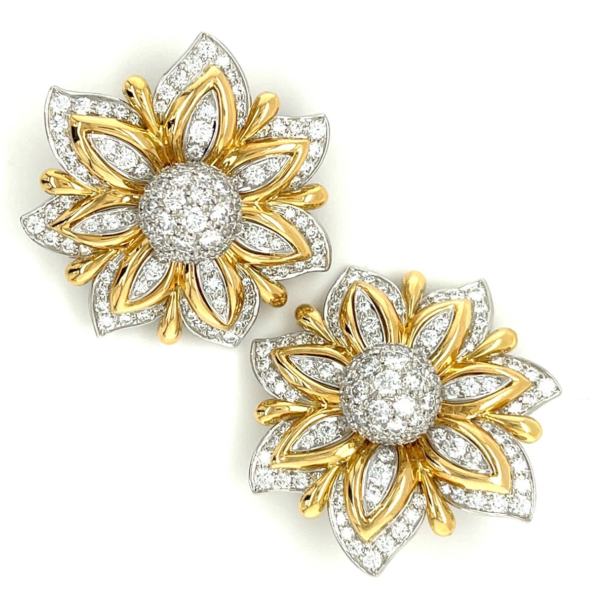 18k Two Gold 3.24 Ct. Diamond Floral Ear Clips Gorgeous