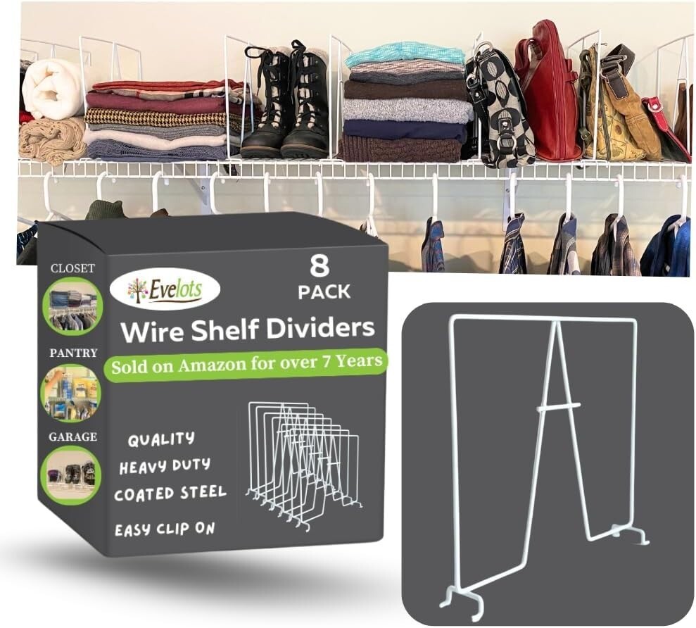 Easy Install Tall Wire Shelf Dividers - 8 Pack for Neat Closet & Pantry Stacking
