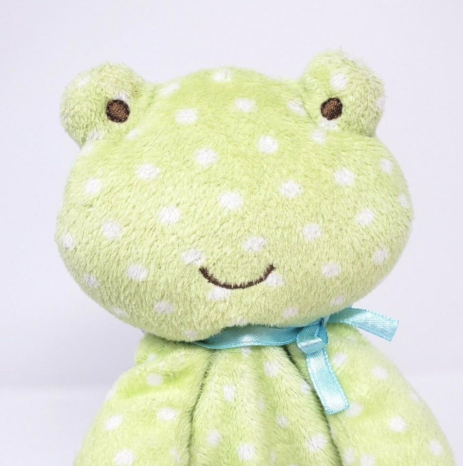 CARTER'S JUST ONE YEAR BABY GREEN FROG DOTS SECURITY BLANKET RATTLE I LOVE HUGS