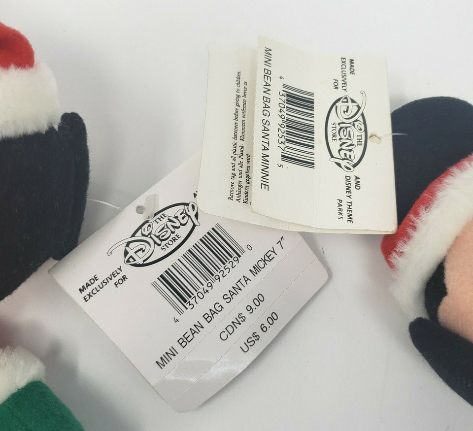 DISNEY MICKEY & MINNIE MOUSE SANTA CHRISTMAS 7" STUFFED ANIMAL PLUSH BEAN BAG