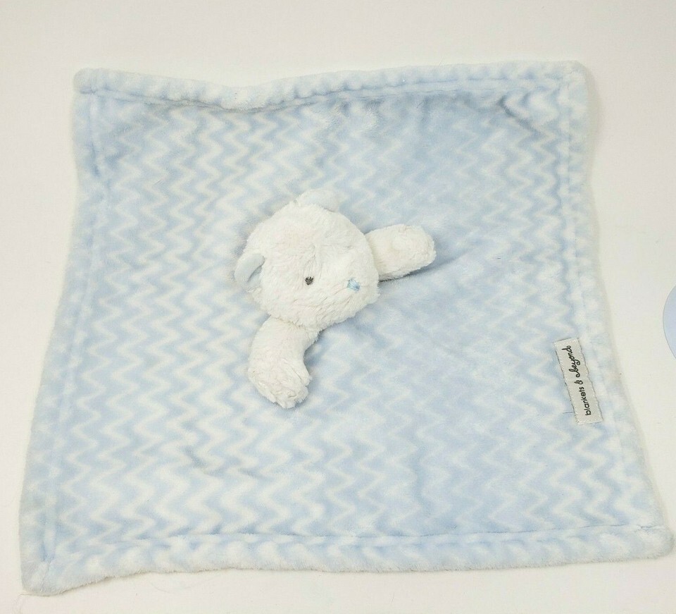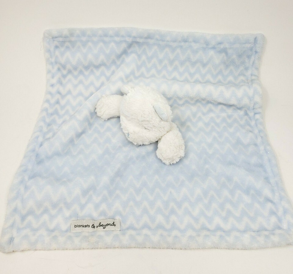 BLANKETS & BEYOND BLUE WHITE TEDDY BEAR SECURITY BLANKET STUFFED ANIMAL PLUSH