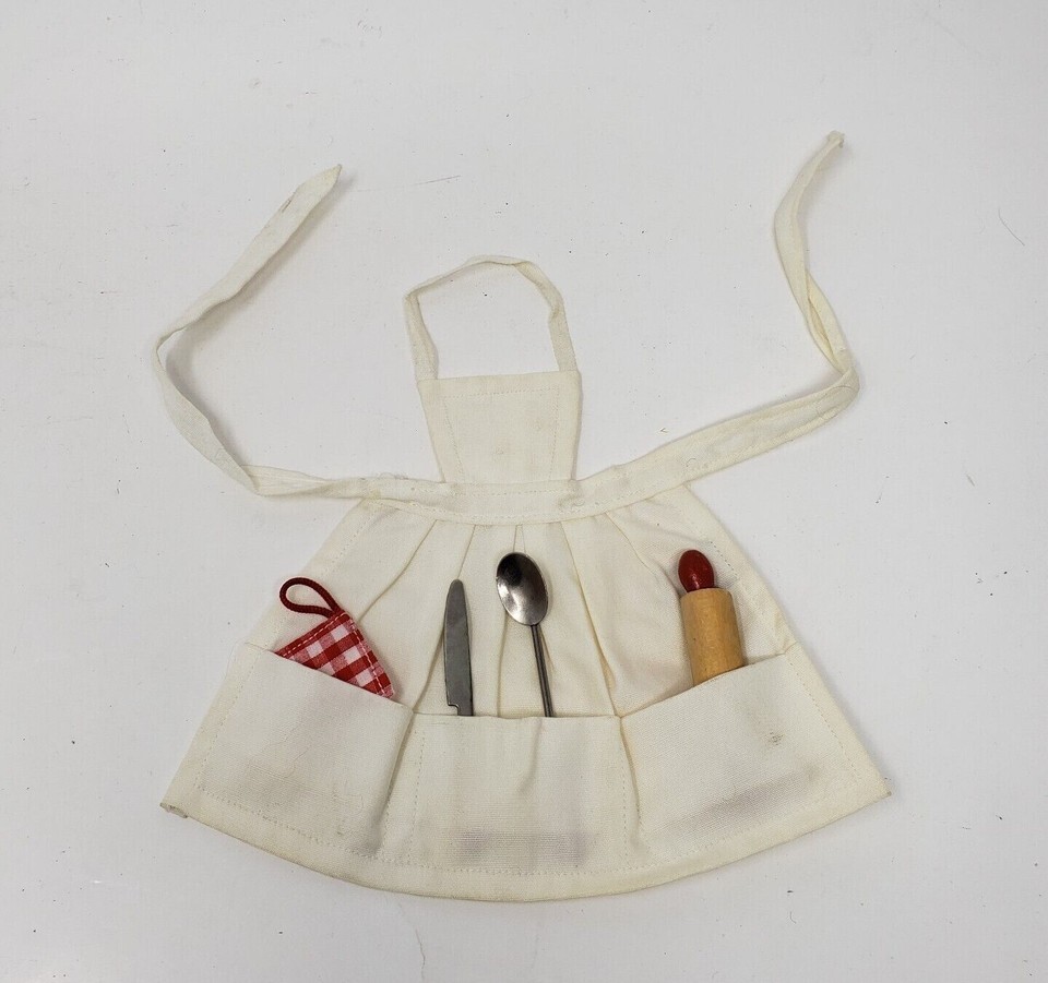 VINTAGE 1962 MATTEL BARBIE BARBIE-Q BBQ PAK WHITE APRON W/ UTENSILS SPOON 962