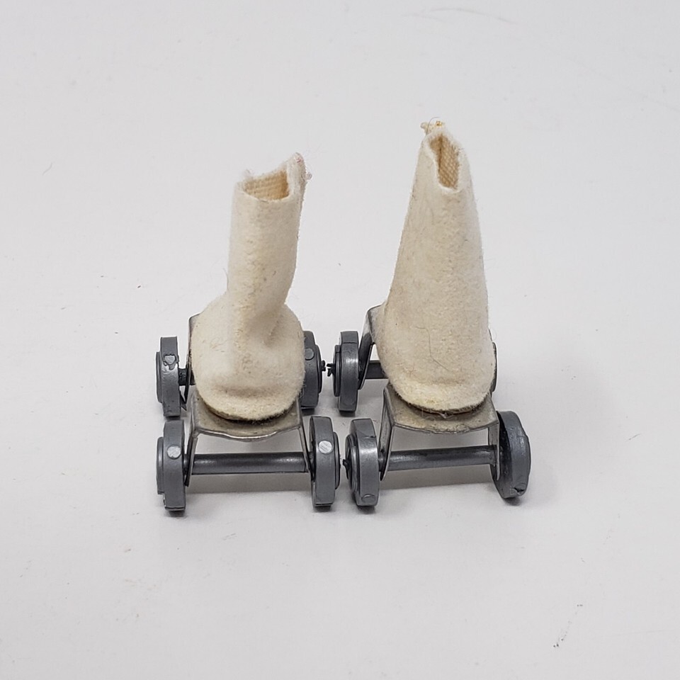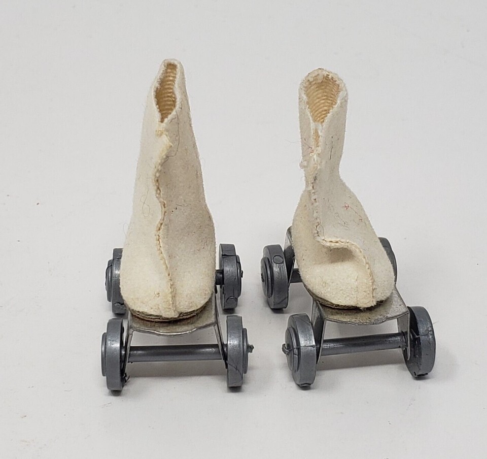 VINTAGE 1960's BARBIE DOLL CLONE WHITE CLOTH ROLLER SKATES W/ SILVER WHEELS