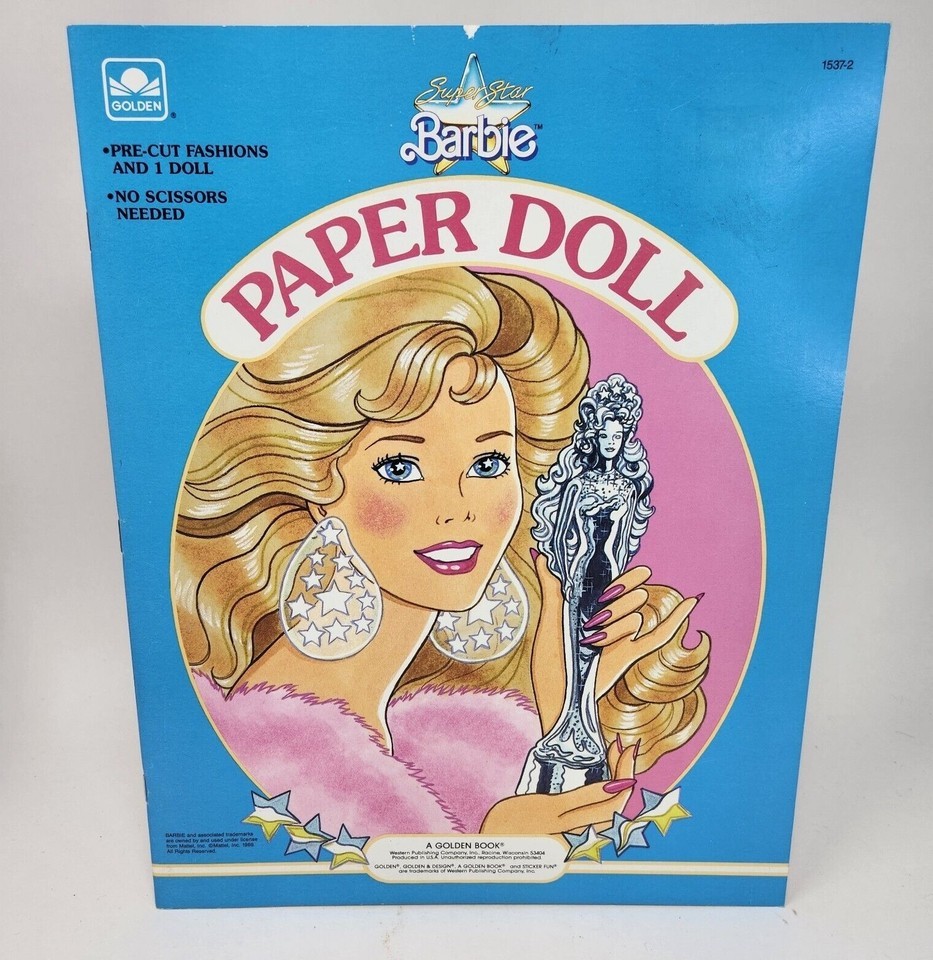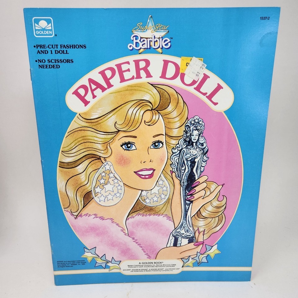 VINTAGE 1989 SUPER STAR BARBIE PAPER DOLL MATTEL BOOK NEVER USED GOLDEN PRE-CUT