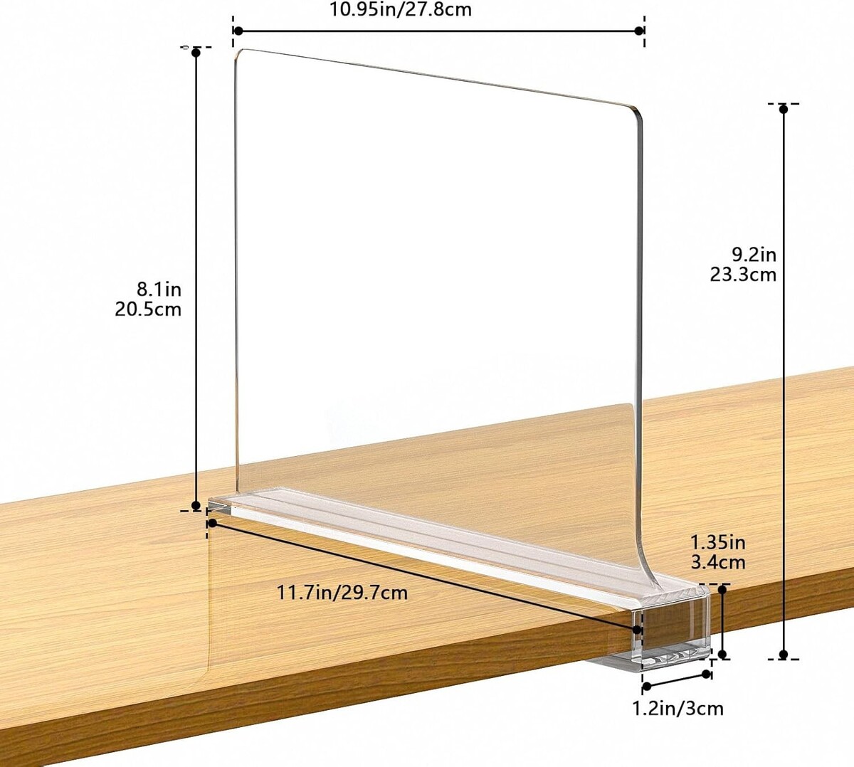 Tidy Shelf, Tidy Mind: A cluttered space always brings a bad mood. There?s no need to feel overwhelmed by disarray. Keep your closet organized and maximize your storage space with our acrylic shelf dividers. Effortlessly create neat and clean sections to elegantly stack items such as clothing, towels, blankets, and linens into a refined pile.