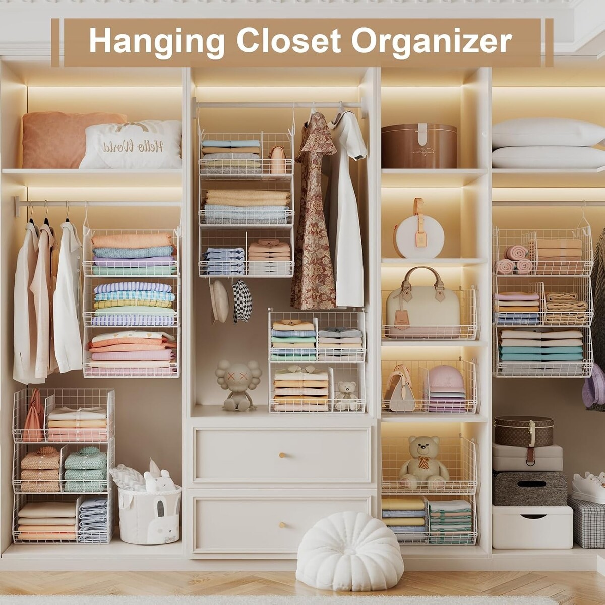3-Tier Extra Large Closet Hanging Shelves - Stylish Storage Solution 16.5x11.8