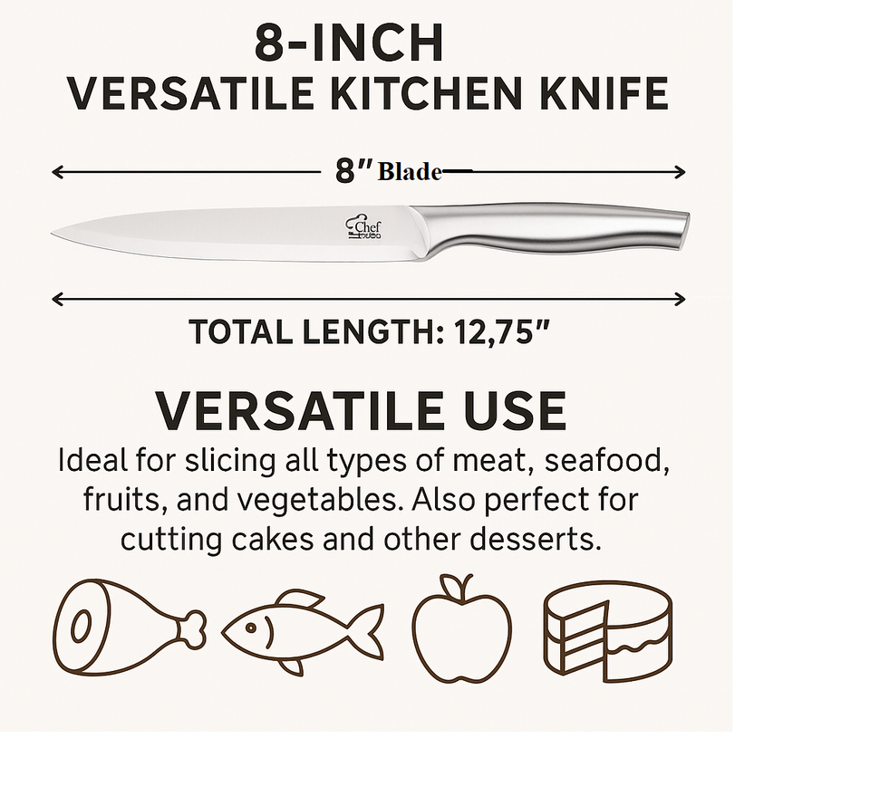 8 Inch Stainless Steel Carving Knife Meat Fish Poultry Fruit Slicing NEW