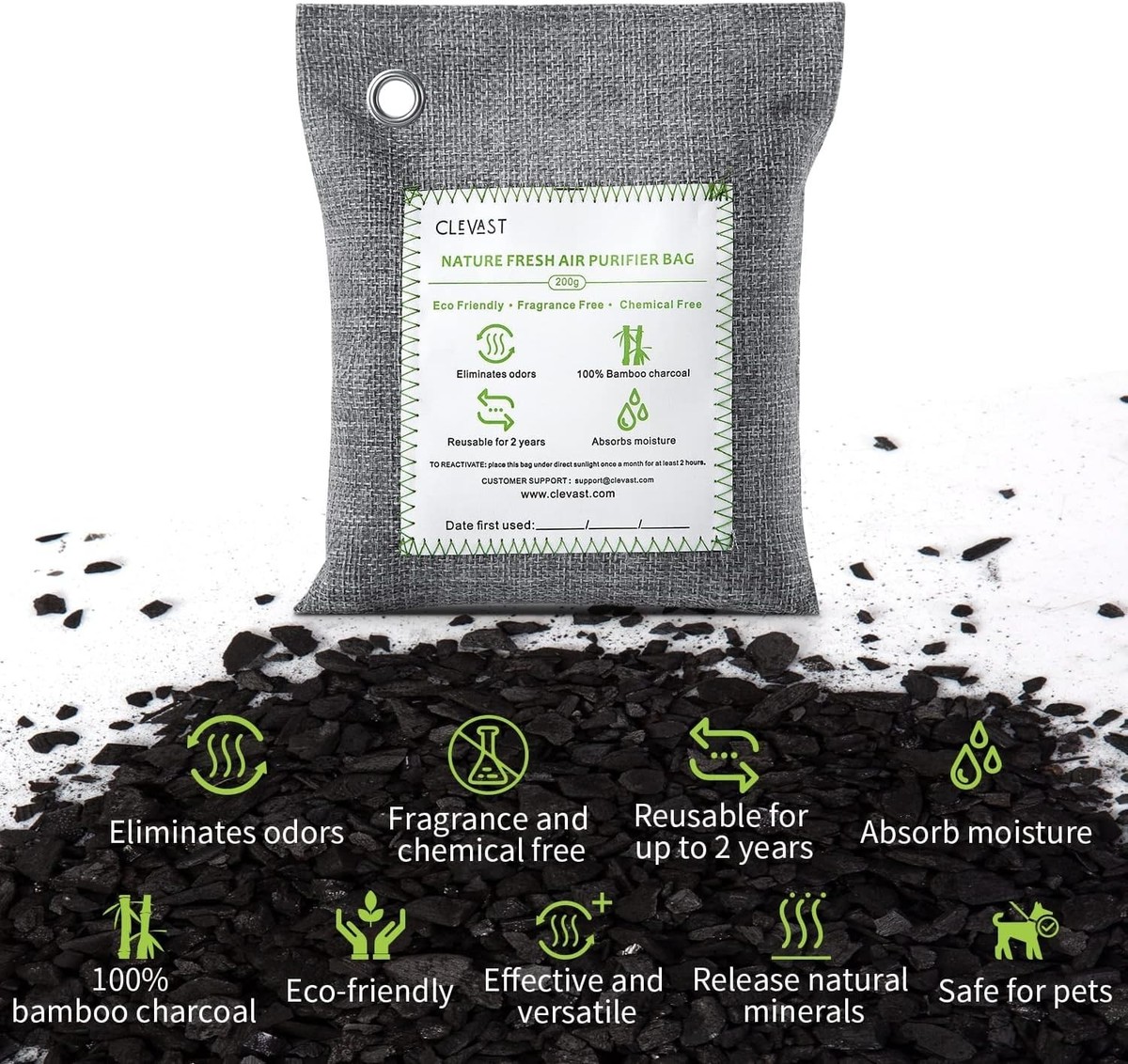 Nature Fresh Bamboo Charcoal Bags - 4 Pack, 200g, Pet-Safe Odor Absorbers