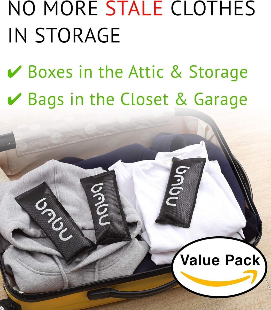 Activated Charcoal Odor Eliminators – 12 Unscented Bamboo Bags for Homes & Cars