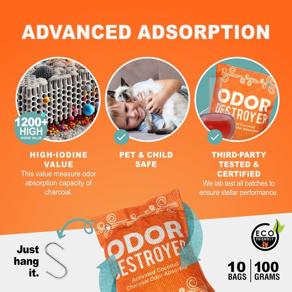 Hooks Included: Our versatile Closet Deodorizer doubles as a gym bag deodorizer and natural air freshener, keeping your spaces?closets, gyms, and shoes?odors-free.