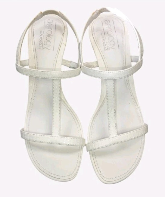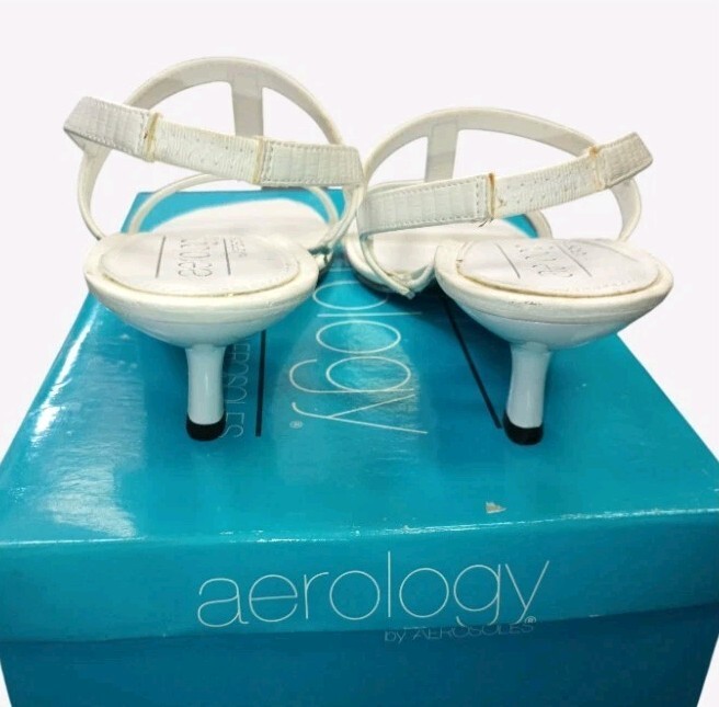 Strappy White Low Kitten Heeled Aerology Sandals By Aerosoles Size 8.5