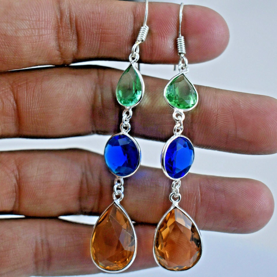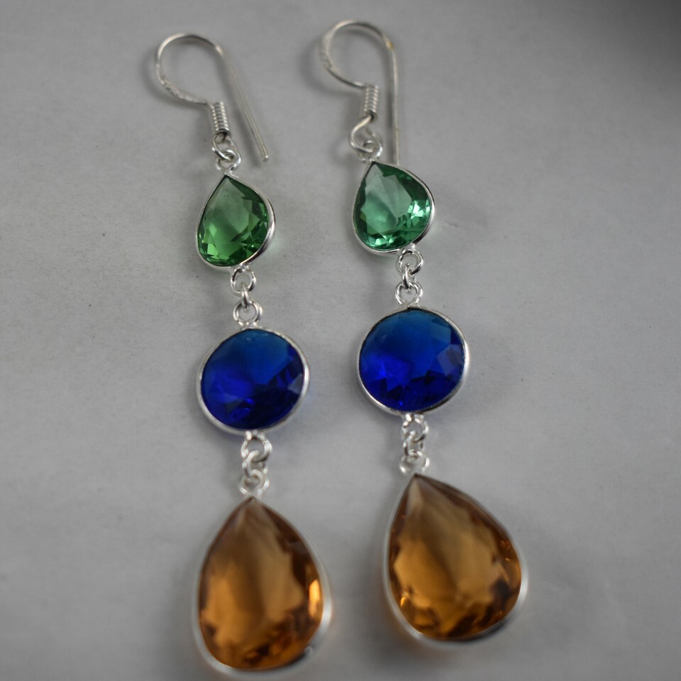 Sterling Silver Citrine & Green Amethyst Handmade Beautiful Lovely Earrings Gift