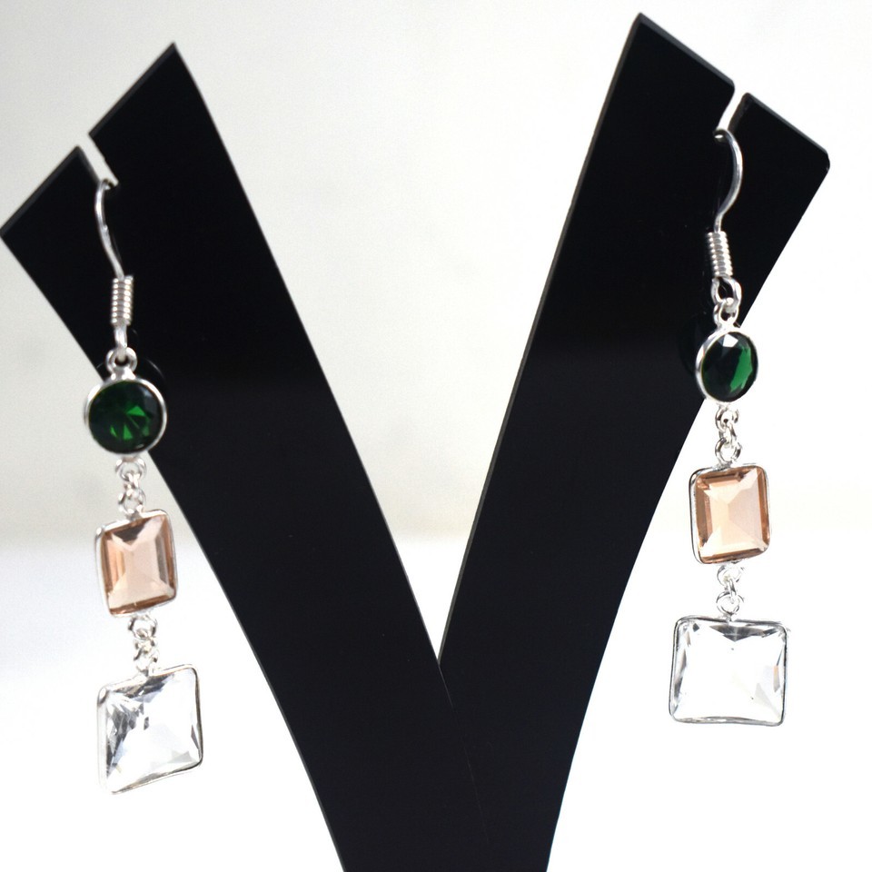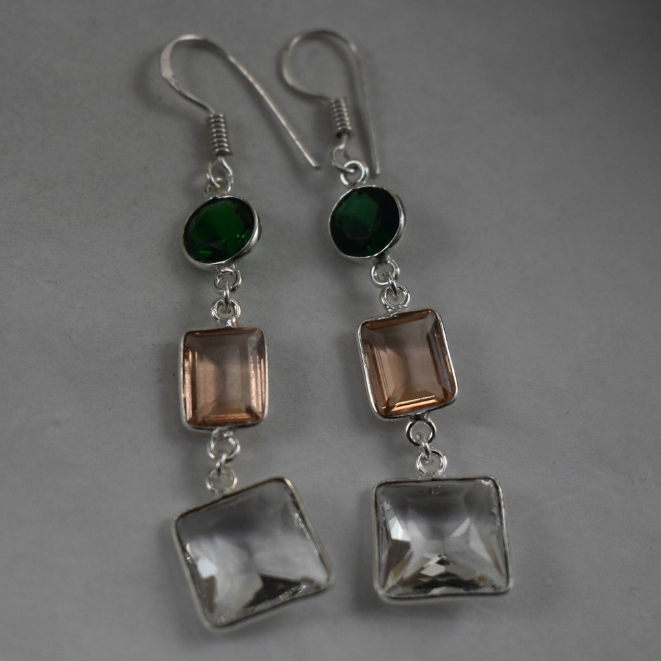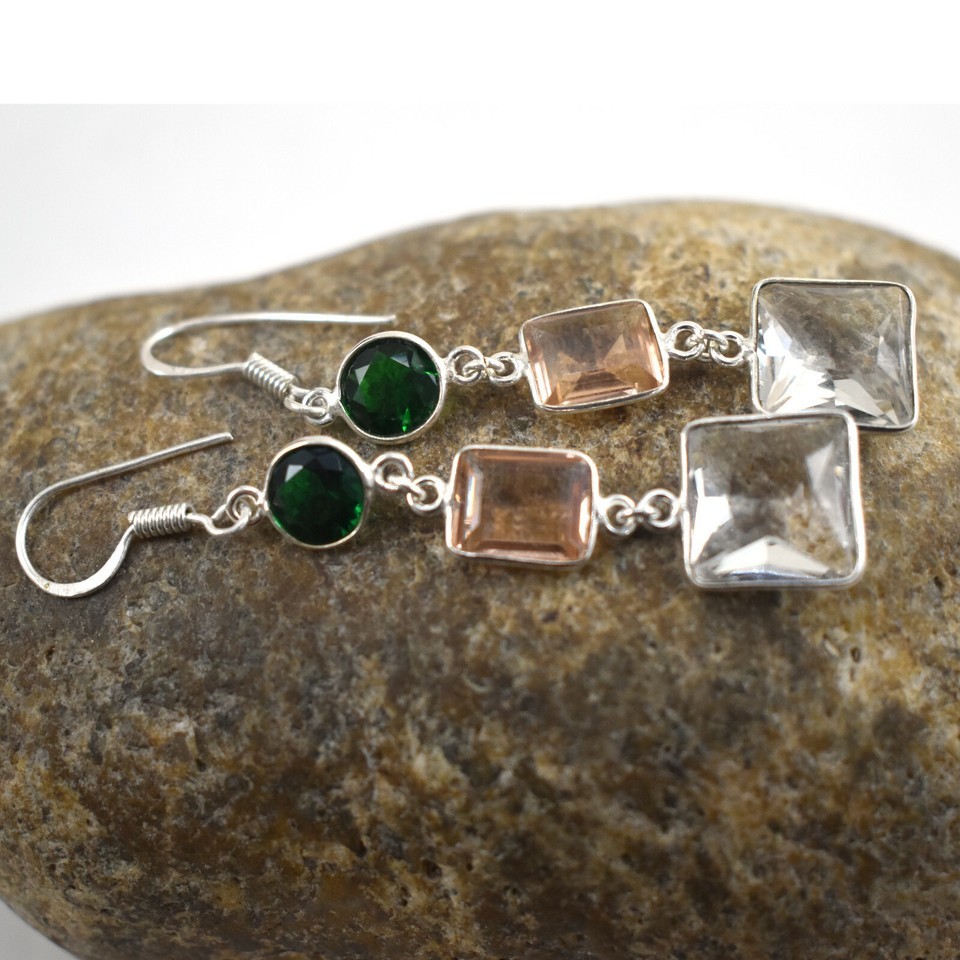 925 Sterling Silver Topaz & Morganite Gemstone Handmade Earrings HerGift BES1510