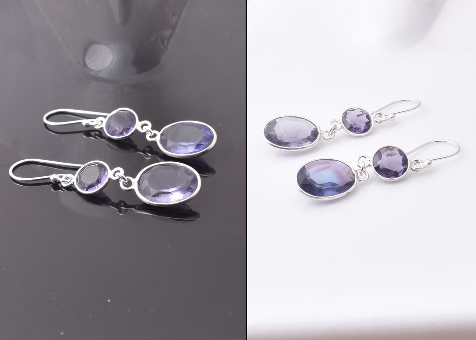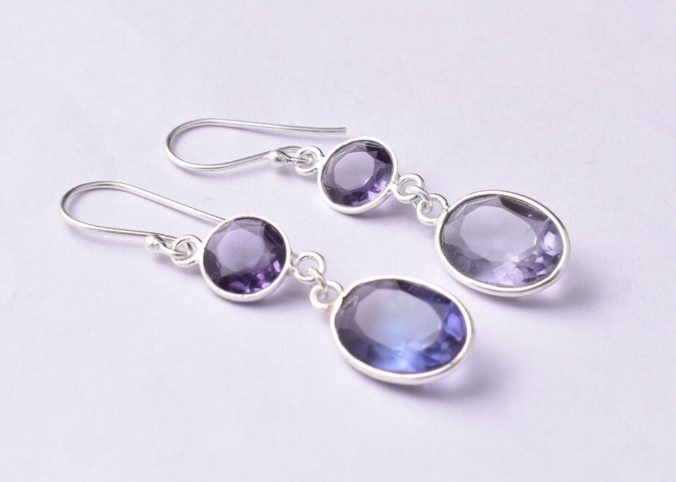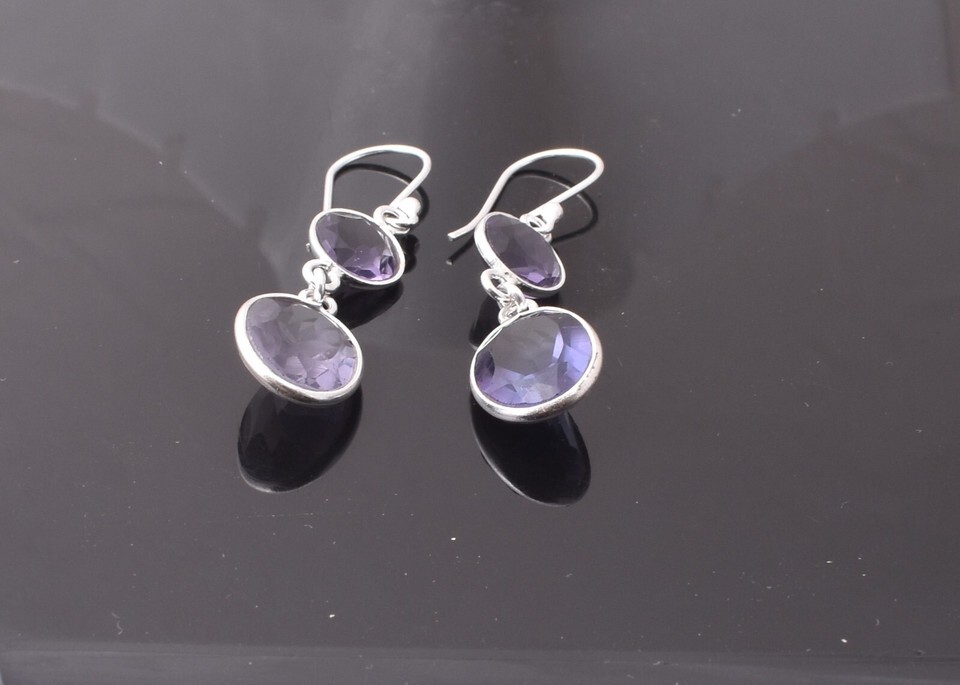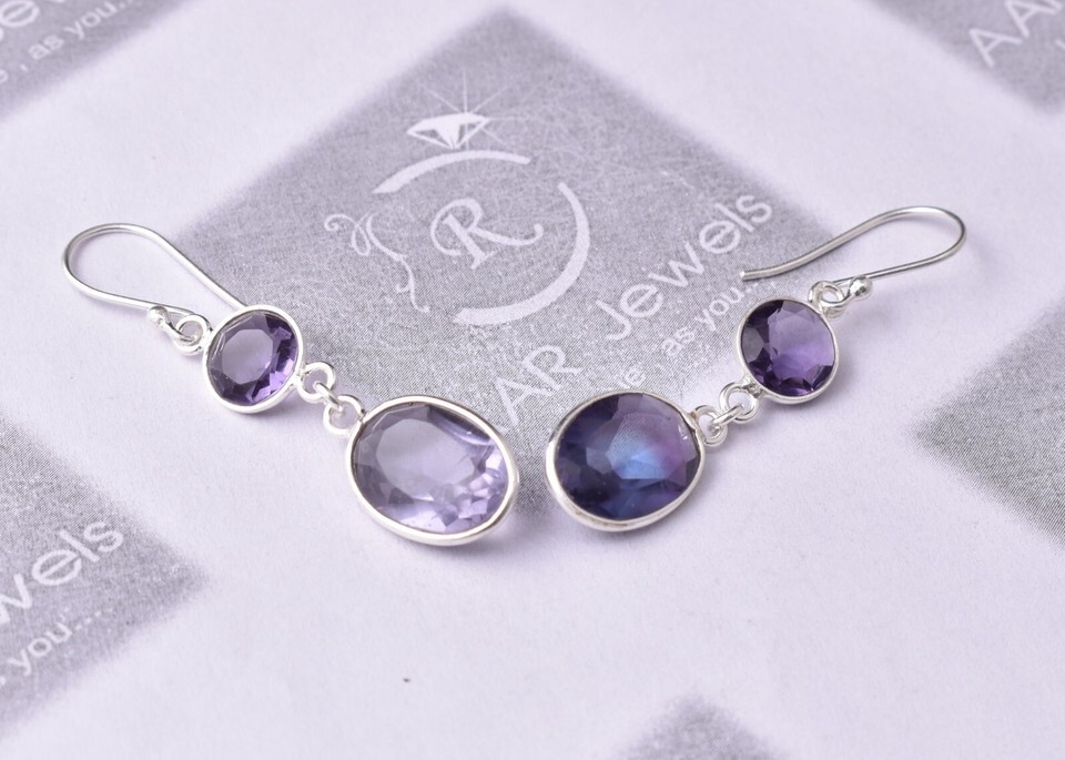 925 Sterling Silver Amethyst Gemstone Handmade Earrings Valentine's Day Gift ES