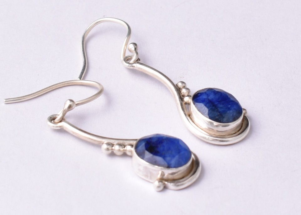 Handcrafted 925 Sterling Silver Sapphire Gemstone Artisan Dangle Earrings Women