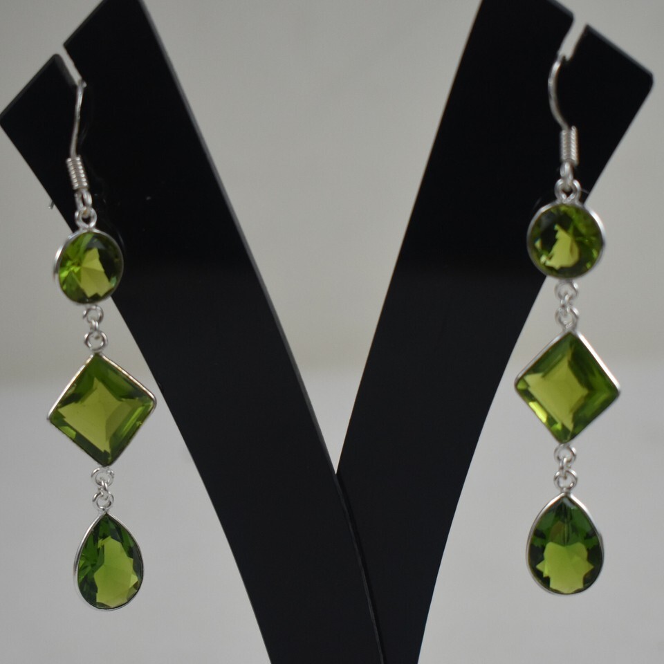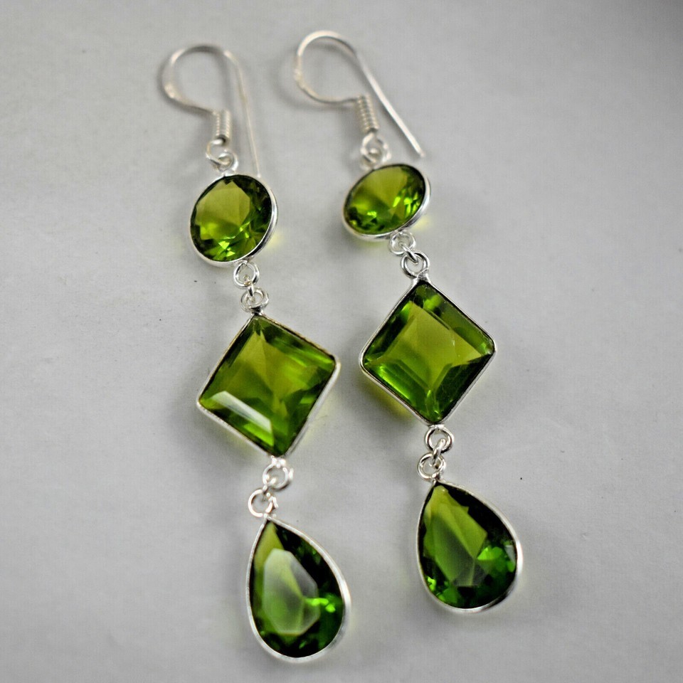 Sterling Silver Handmade Peridot Stone Long Dangle Fantastic Lovely Earring Gift