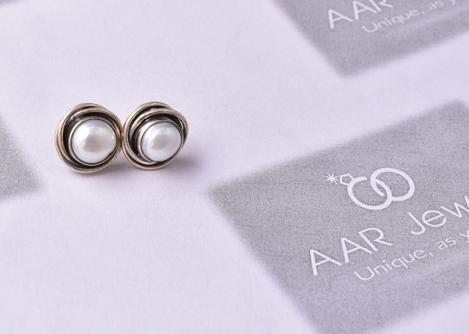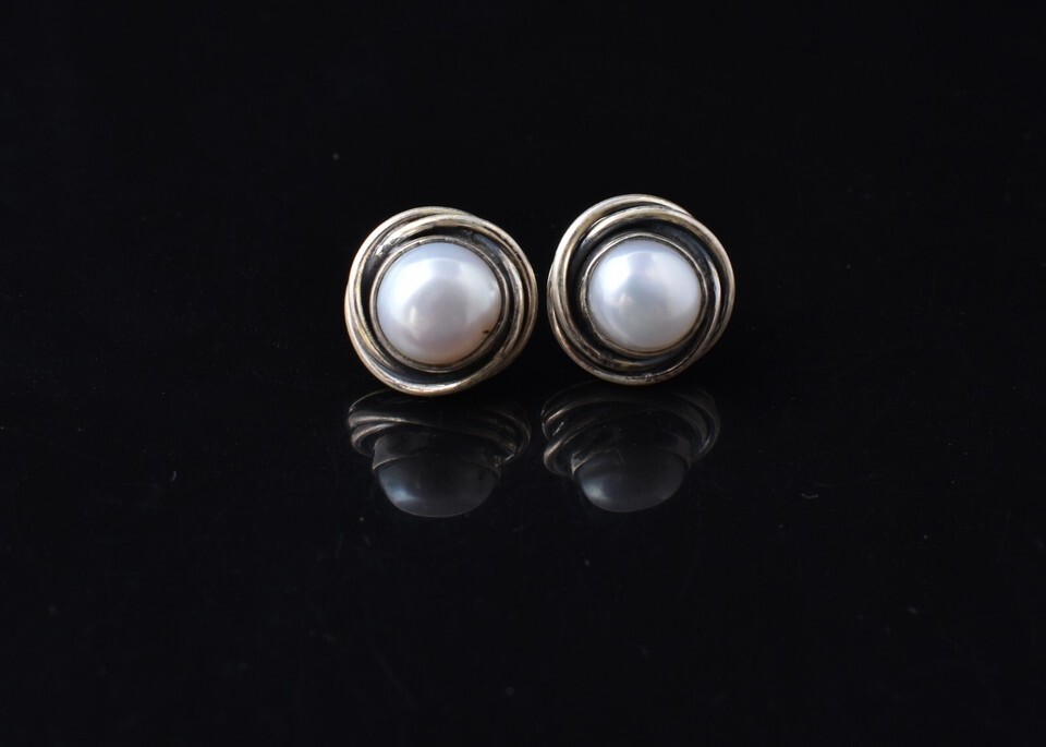 925 Silver Women Stud Earrings Natural Fresh water Pearl Handcrafted Party Wear