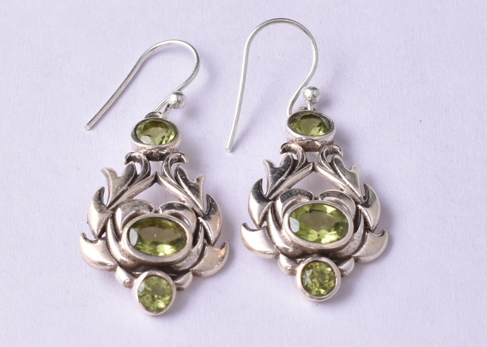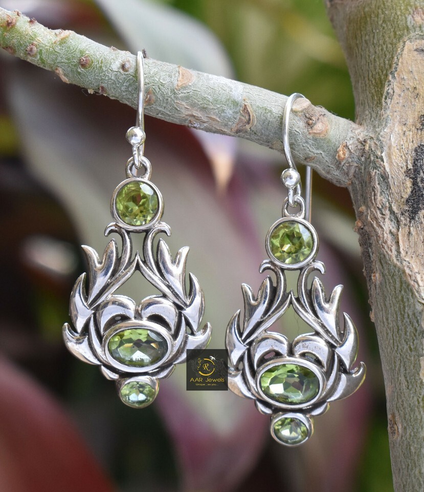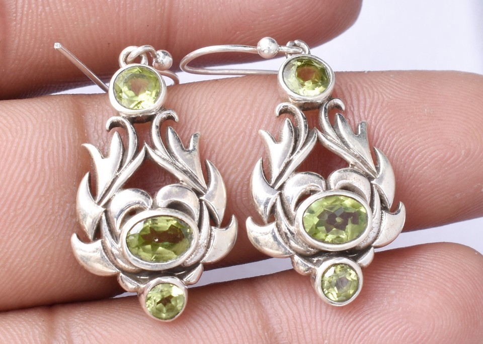 925 Sterling Silver Faceted Peridot Gemstone Handmade Earring Women Party Wear
