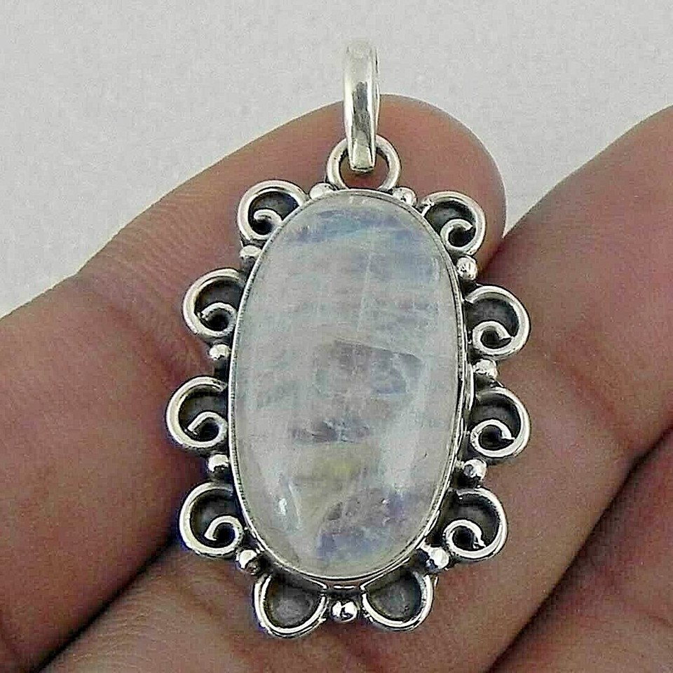 925 Sterling Silver Pendant Necklace Moonstone Fine Jewelry Handmade PS-2042