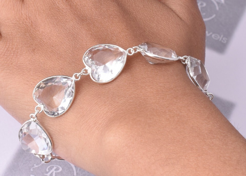 925 Sterling Silver Crystal Quartz Gemstone Women's Bezel Bracelet Casual Wear
