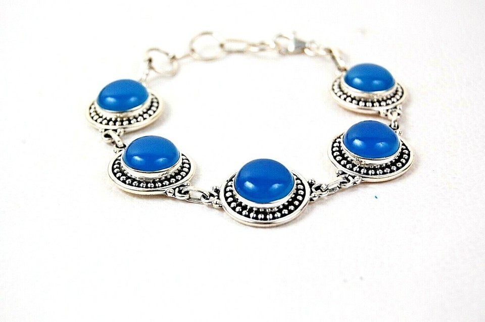 Sterling Silver Chalcedony Gemstone Handmade Women's Bracelet Anniversary Gift's