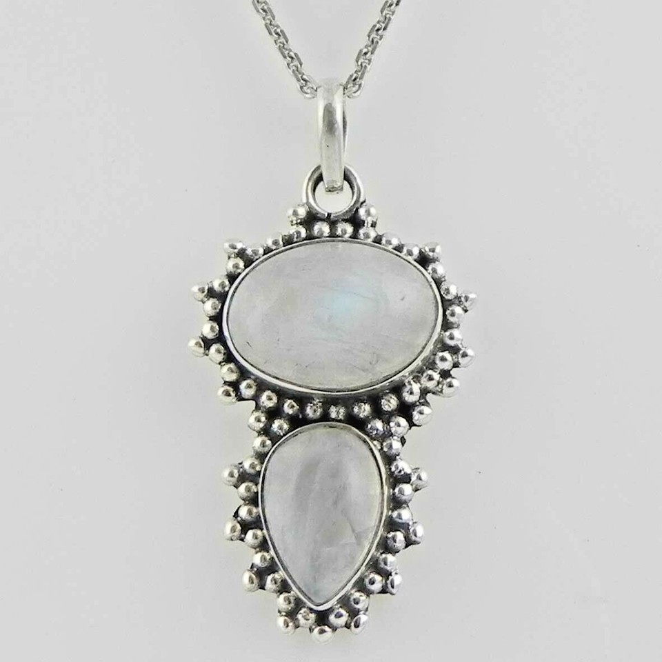 Handcrafted Sterling Silver Pendant Necklace Natural Moonstone Mothers Day Gift