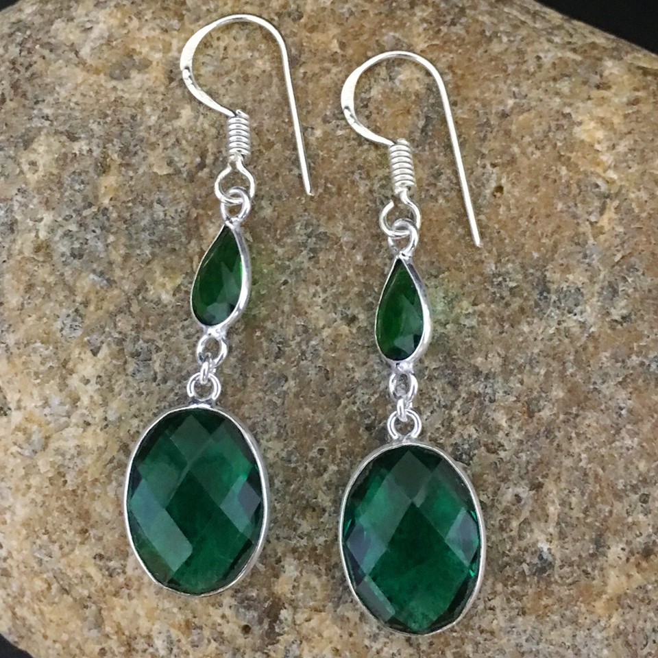 925 Sterling Silver Green Glass Stone Gold / Rose Gold Plated Earrings Gift