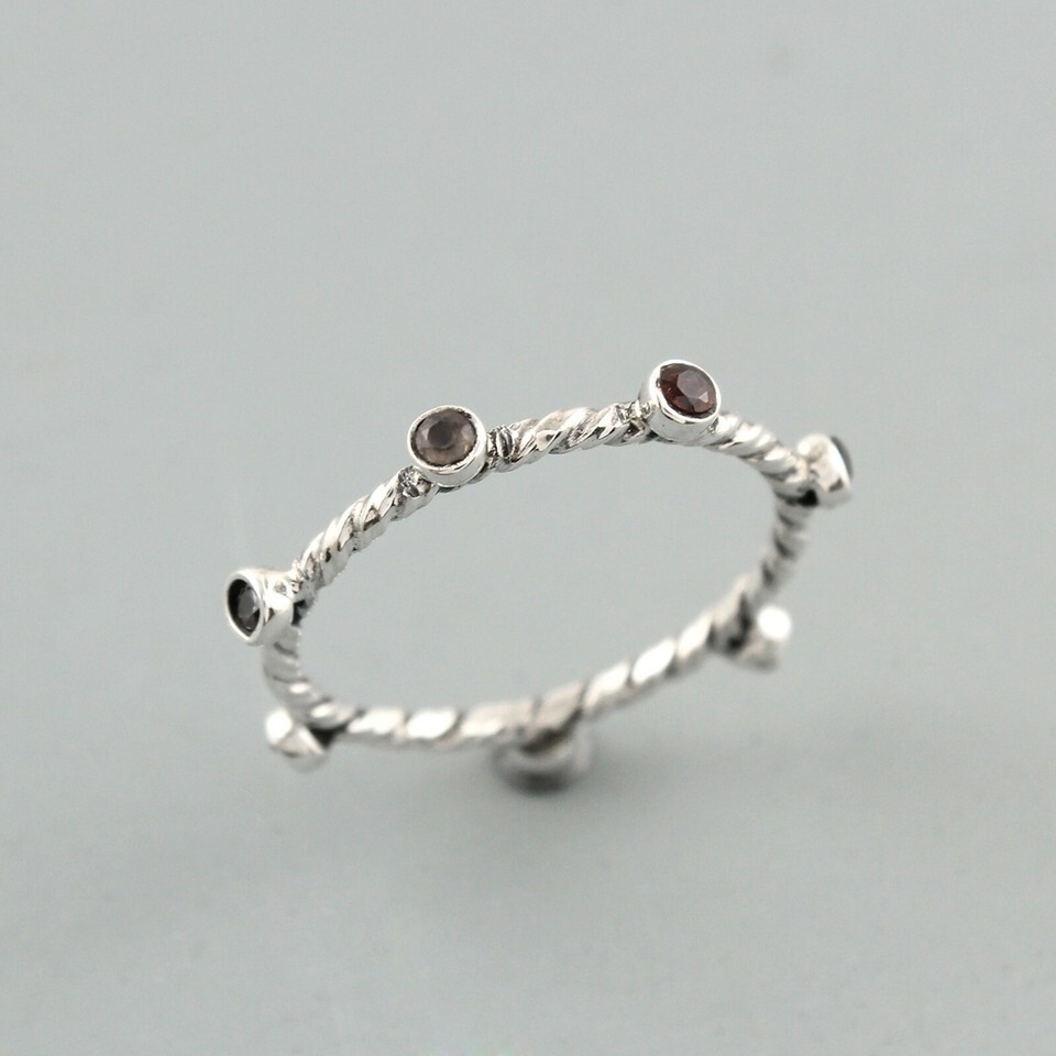 925 Sterling Silver Smoky Quartz Gems Handmade Ring Band Women Party Wear Gift