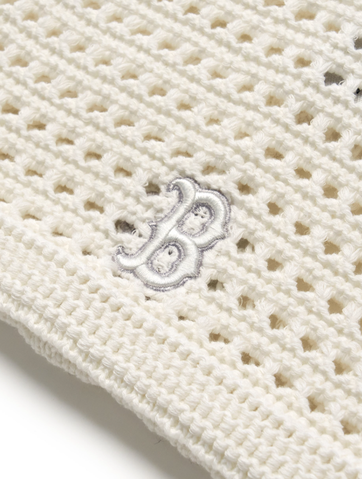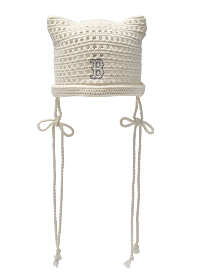 MLB Korea Summer Ribbon Meow Cat Beanie Hat Boston RedSox Casual Lifestyle Cream