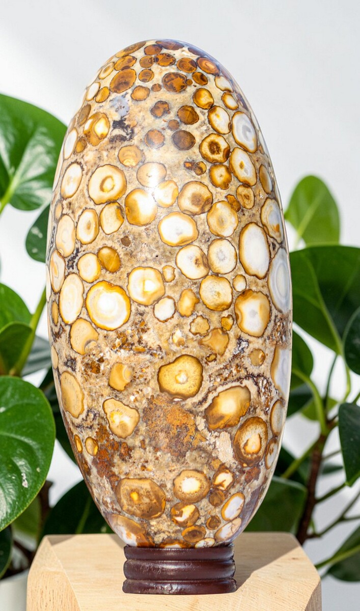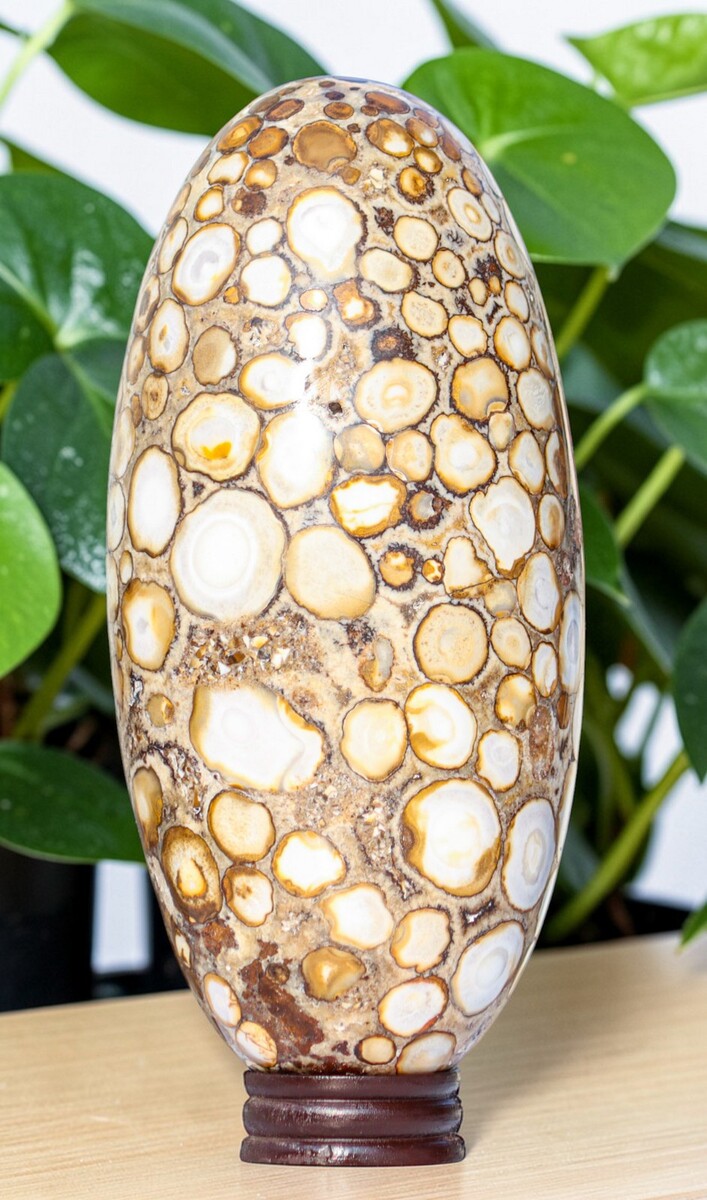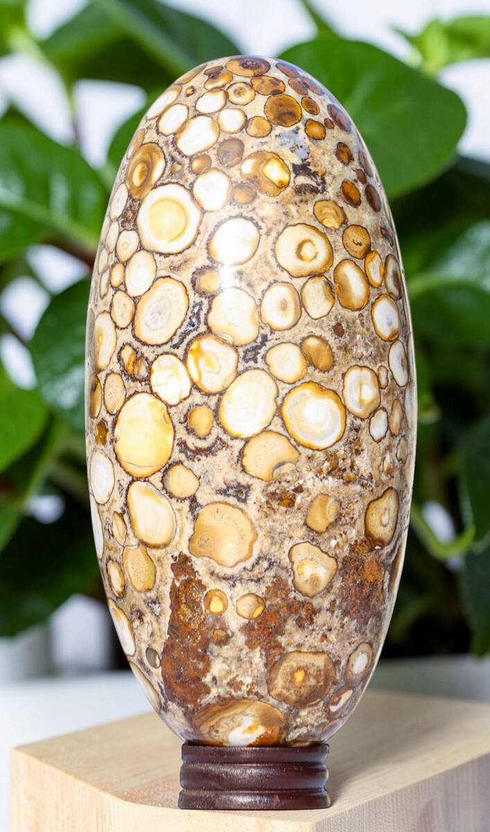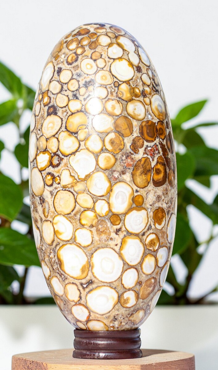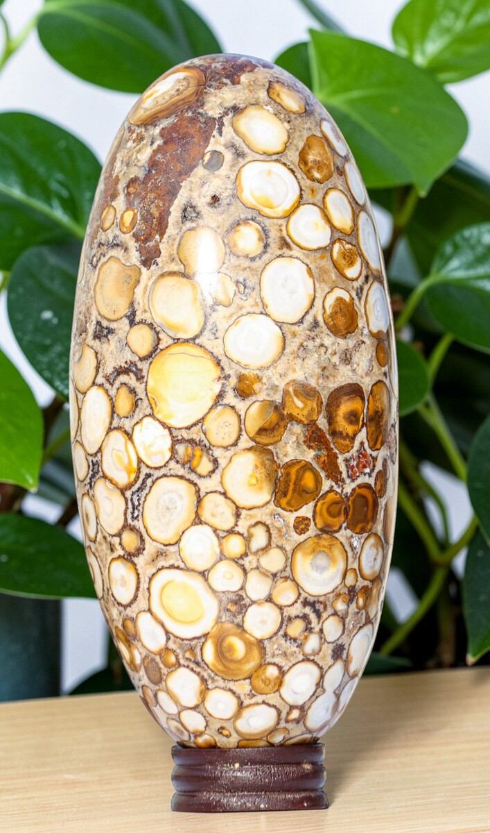 This 270MM Superb King Cobra Jasper Crystal Quartz Healing Reiki Energy Stone Lingam is a powerful tool for those seeking spiritual growth and healing. Crafted with precision and care, this polished egg-shaped stone boasts a beautiful brown/yellow/white/orange colour that is sure to catch the eye. Its unique Sub-Type, which is Crystal, makes it a rare and valuable addition to any collection.