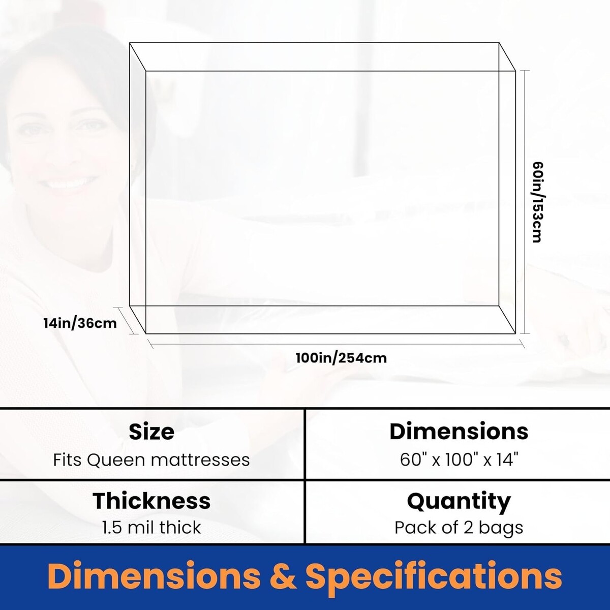 Generously Sized Queen Mattress Bags - 2-Pack, 1.5 Mil Moisture Resistant