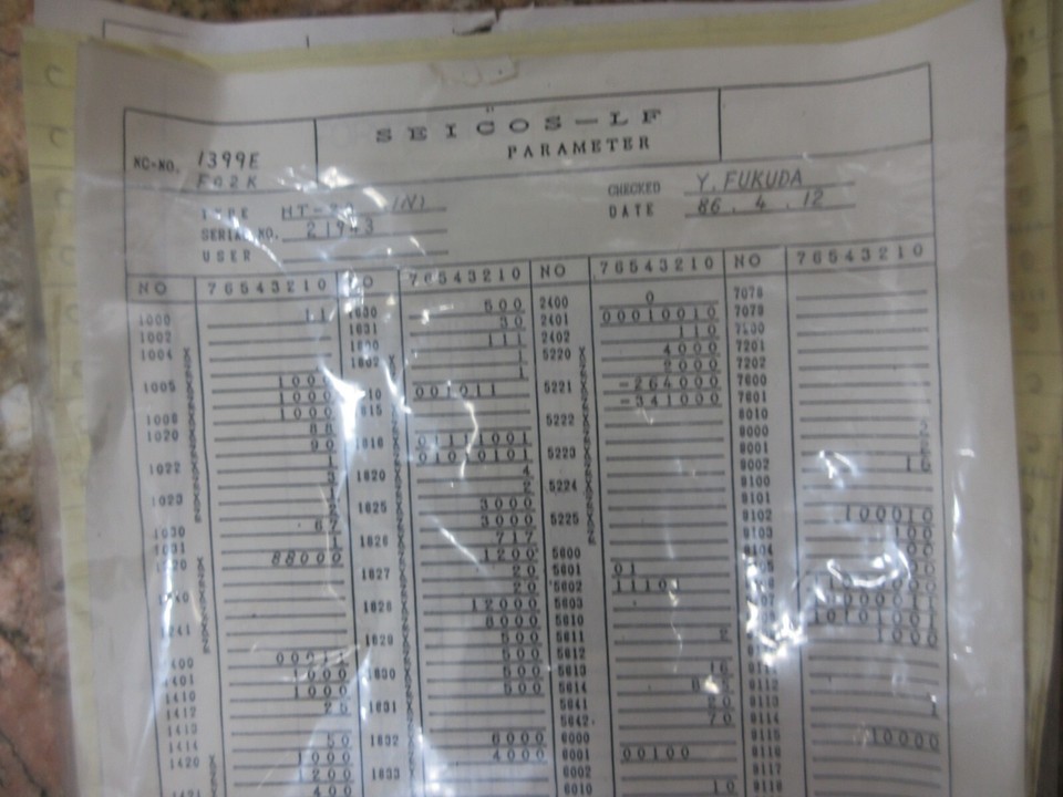1987 HITACHI SEIKI HT20 CNC LATHE PARAMETER PARAMETERS SETTING LIST
