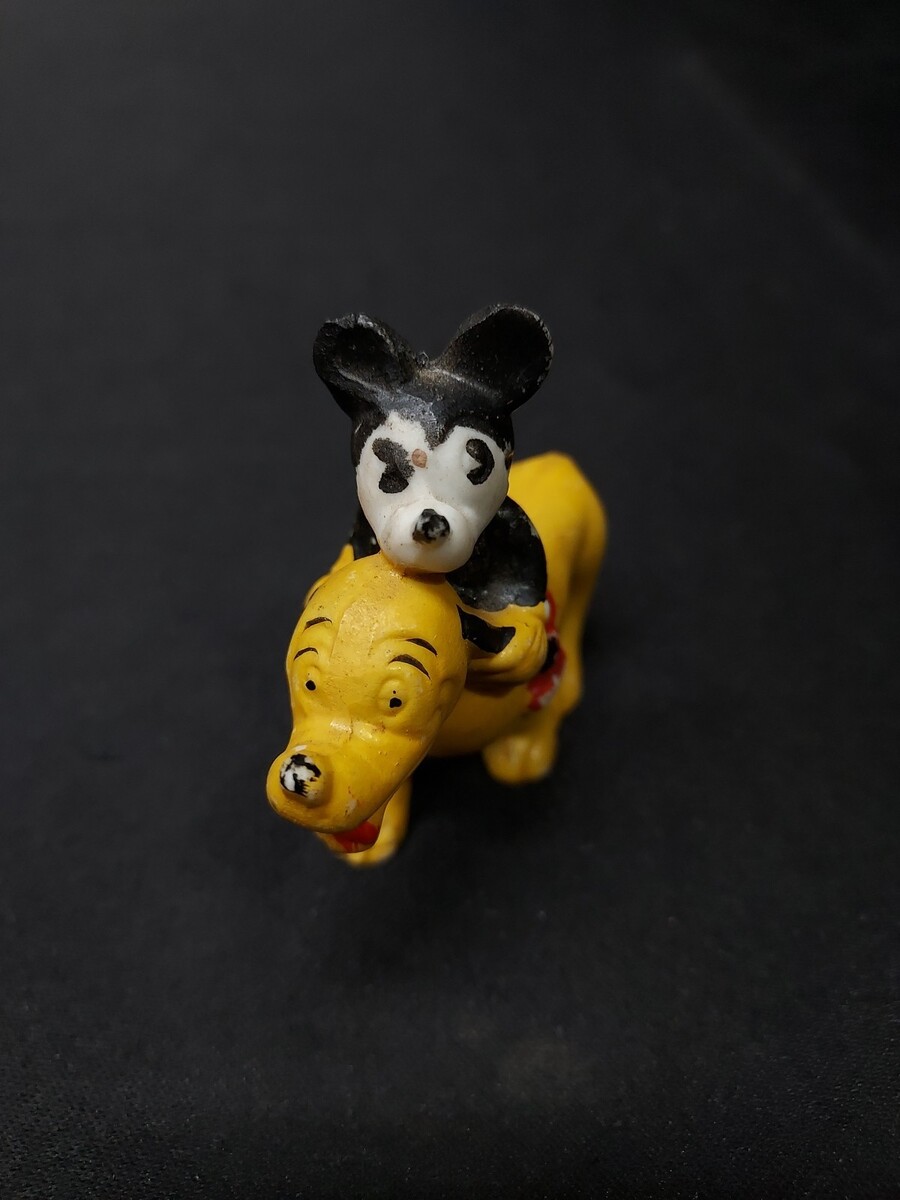 RARE Mickey Mouse Riding Pluto Bisque Figurine Walt Disney Japan 1940s