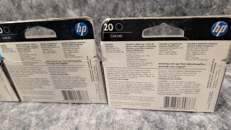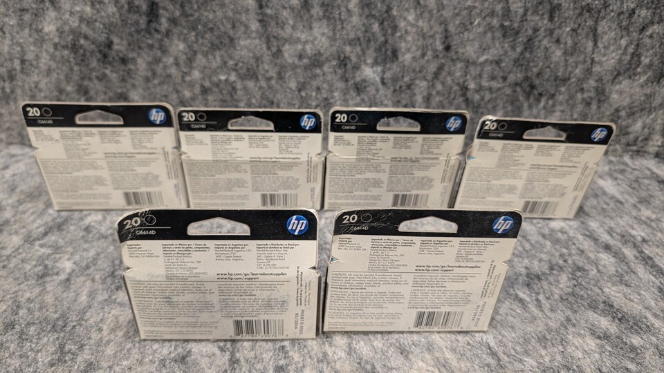 6 x Genuine HP 20 Black Ink Cartridge C6614D Genuine EXP 2011/2014 New