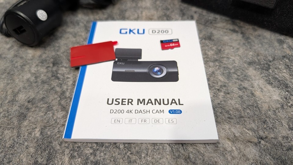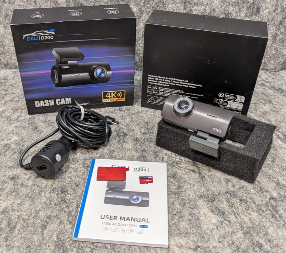GKU D200 Dash Cam 4K Front 1080P Rear Camera Nightvision 64G SD Card
