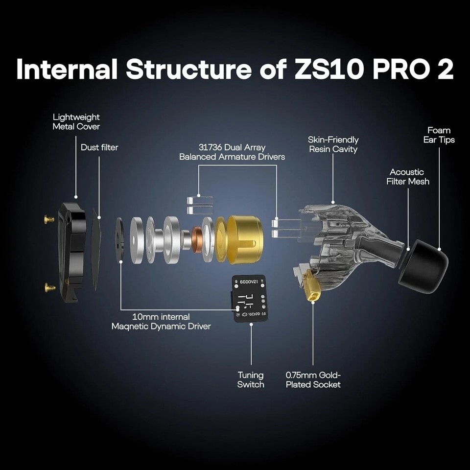 KZ ZS10 PRO 2 in Ear Monitor Headphones, 4-Level Tuning Switch, 1DD+4BA New