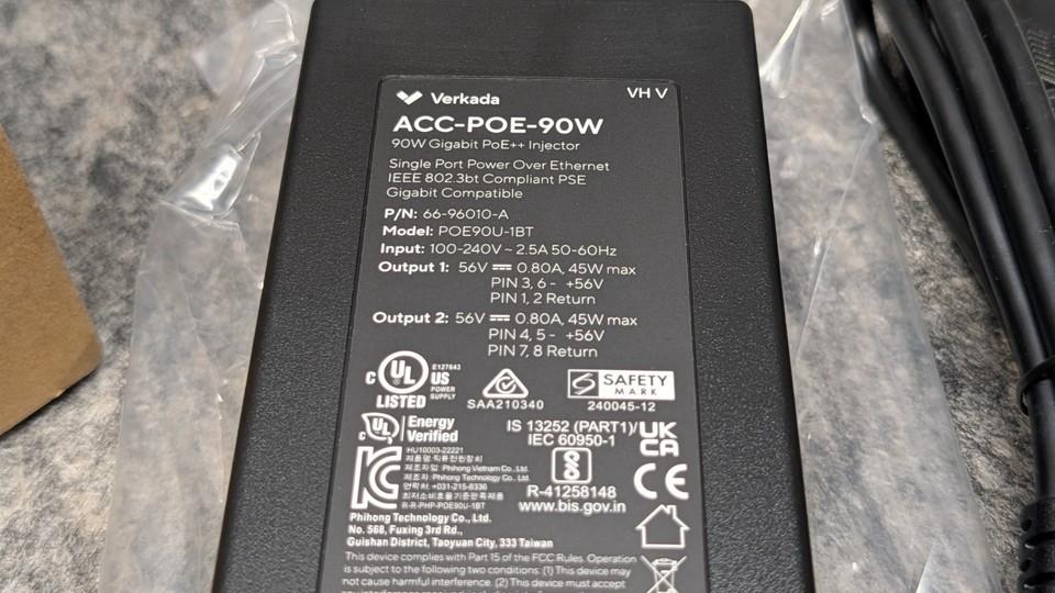 Verkada ACC-POE-90W-NA Outdoor 90W PoE++ Injector (3A-96011-A) New